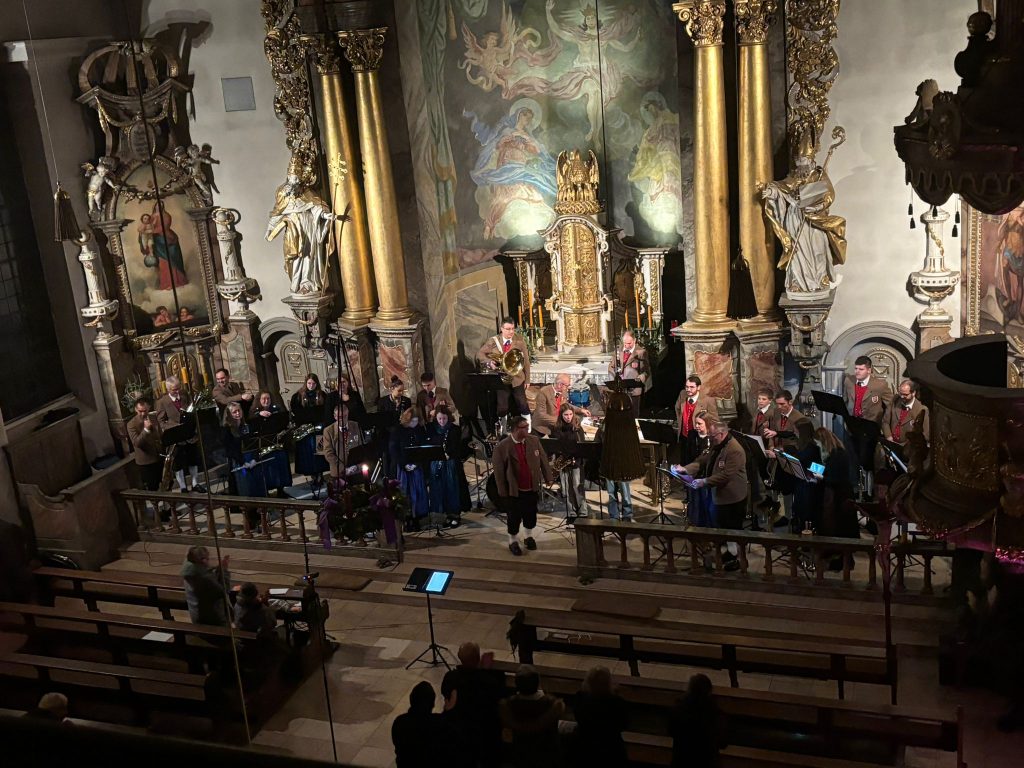 Unter dem Motto „Adventliche Stunde“ hatten wir zu einem kleinen vorweihnachtlichen Kirchenkonzert eingeladen. Mit einer Mischung aus traditionellen und modernen Werken – u.a. dem Thema aus „Drei Nüsse für Aschenbrödel“, Andachtsjodler und Jingle Bells – sowie einer Weihnachtsgeschichte stimmten wir das Publikum auf die kommende Weihnachtszeit ein. Dirigent Jürgen berichtete von einer durchweg positiven Resonanz und dem Wunsch vieler Zuhörer nach einer Wiederholung im nächsten Jahr. Bei einem Umtrunk auf dem Kirchplatz bestand anschließend noch Gelegenheit für geselligen Austausch mit den Zuhörern.