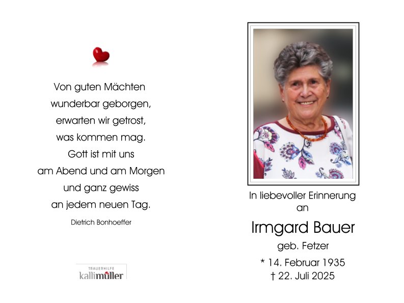 Beerdigung Irmgard Bauer 04.08.2025