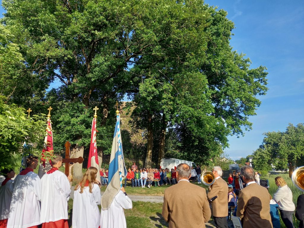 Bei bestem Wetter zogen wir von der Kirche zum Bildstock und begleiteten dort die Andacht musikalisch.