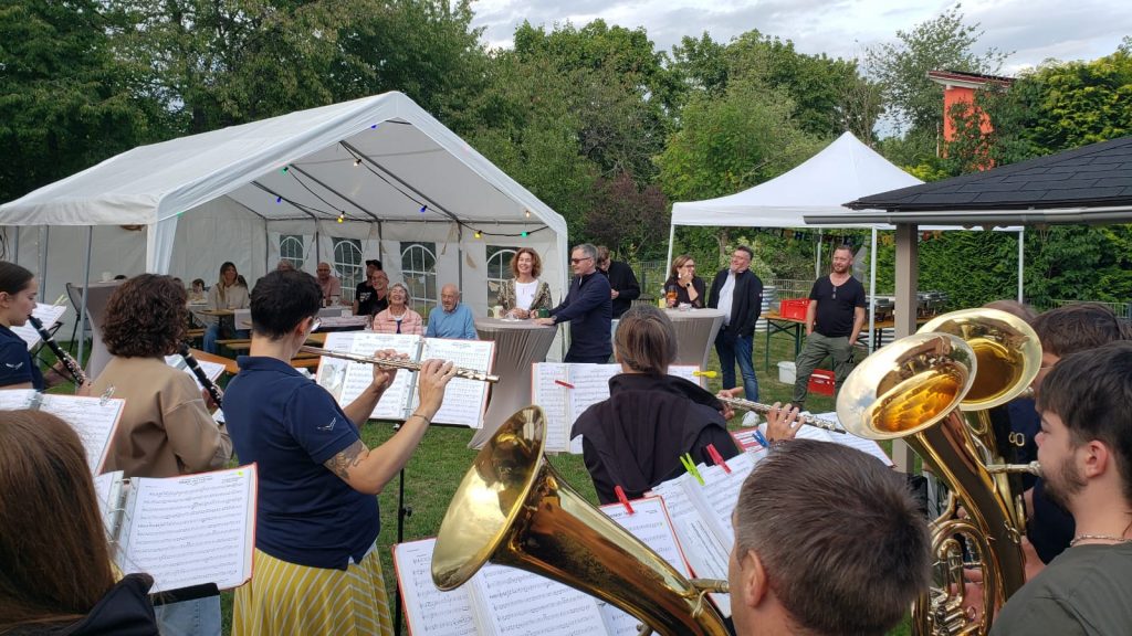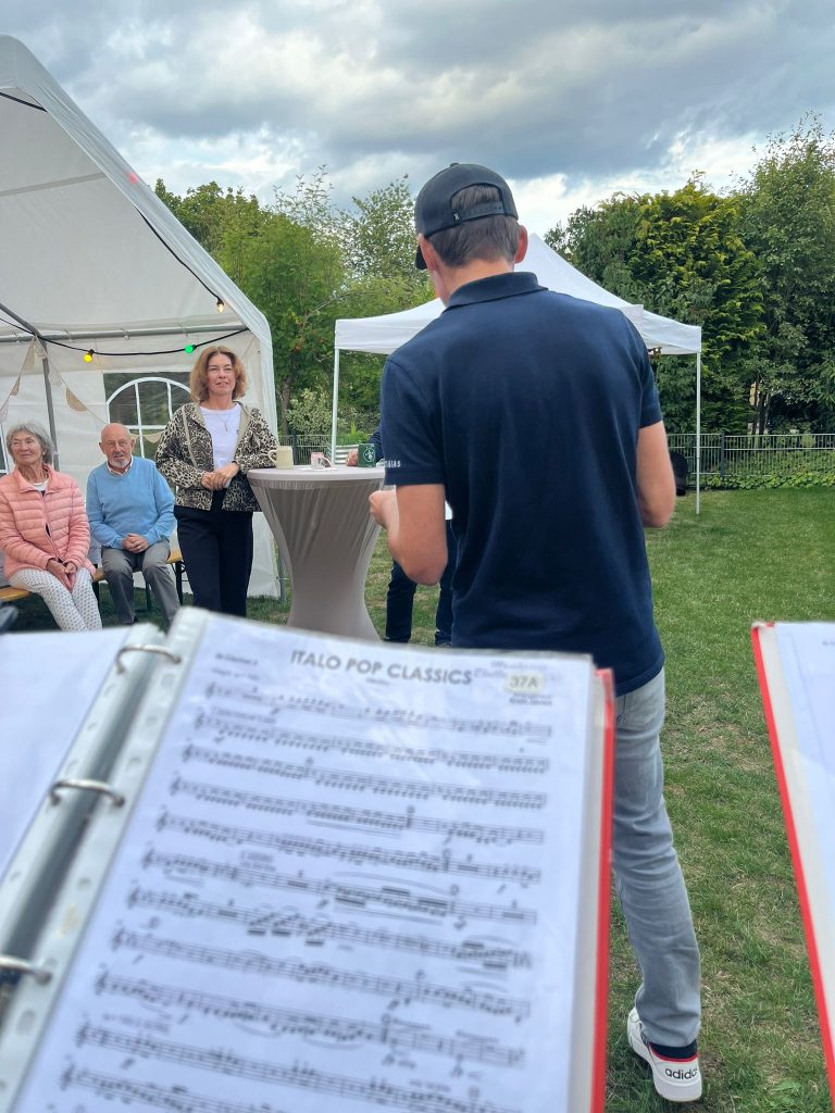 Heute feierte unsere Sandra ihren 50. Geburtstag. Vorstand Matthias hob in seiner Ansprache hervor, dass Sandra bereits seit 39 Jahren Mitglied der Blaskapelle ist und sich seit vielen Jahren unter den Musikern mit den meisten Probenbeteiligungen befindet. Ein Ständchen, bei welchem sich das Geburtstagskind etliche Stücke wünschen durfte, war also selbstverständlich. Anschließend hatten wir uns eine Stärkung verdient und nahmen wir die Einladung zur Gartenparty gerne an.